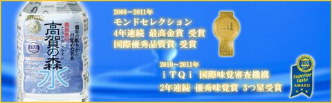 原水は、奥長良川、高賀渓谷の一億年前の地層から湧き出た天然水です。その天然水をパイプラインにて工場へ送水後、0.2ミクロンのセラミックフィルターで無菌ろ過し、非加熱で充填しました。モンドセレクション4年連続最高金賞を受賞するなど、世界に認められた天然水です。
