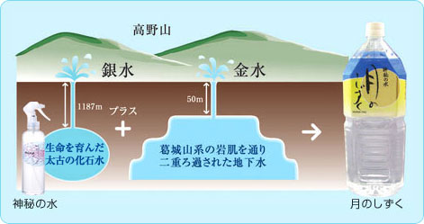 採取地の島根県金城(かなぎ)町は、昔から良質の温泉地帯として知られています。その地下300m、花崗岩の下に大自然が永年かけてつくり出した原水は、高品質で加熱殺菌の必要がない天然のアルカリイオン水。